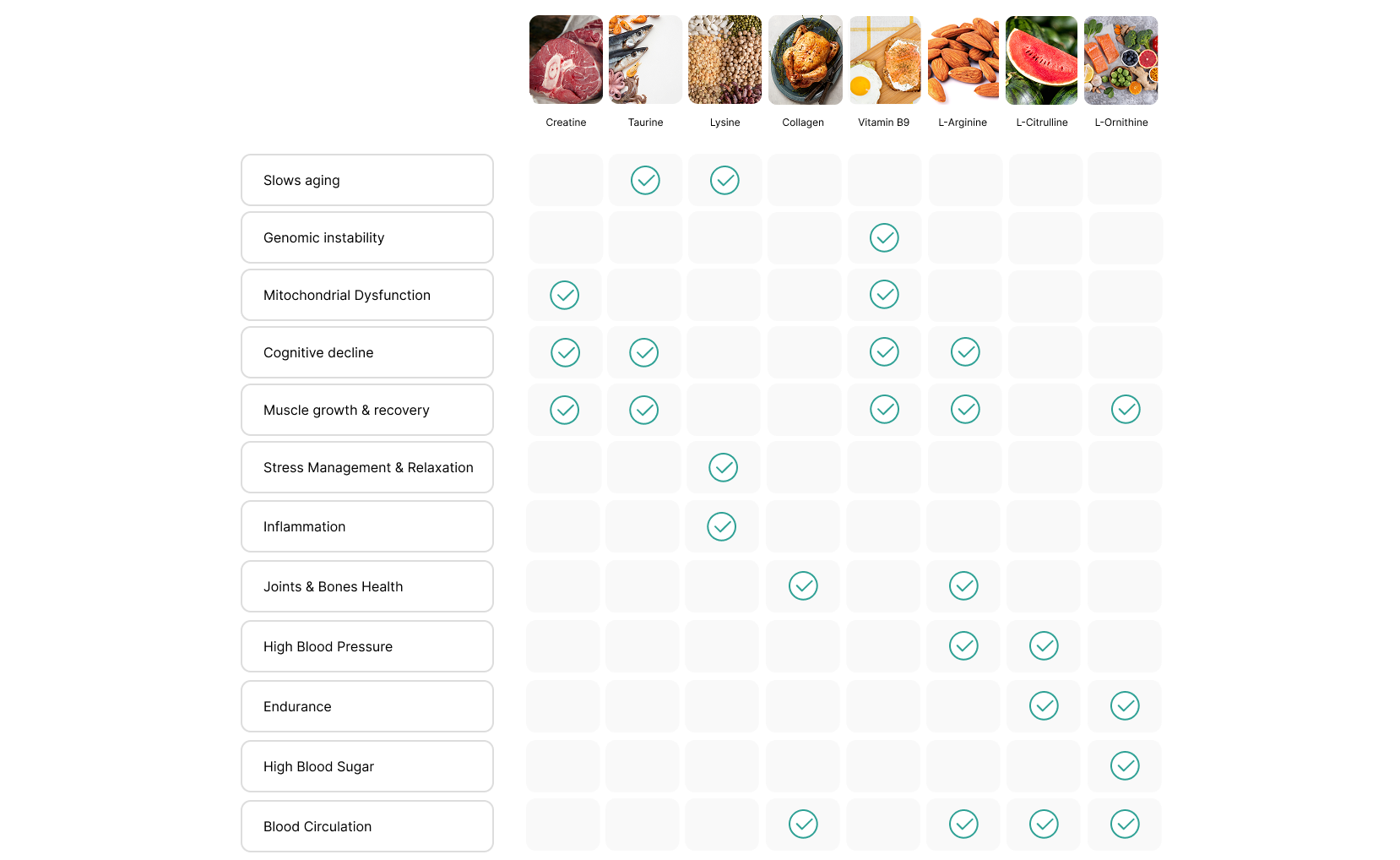 Mit einer präzisen Mischung aus Kreatin, Kollagenpeptiden, Taurin, Lysin, Citrullin, OKG und Arginin wurde dieses System entwickelt, um Ihren Körper mit Energie zu versorgen, Ihr Gewebe zu regenerieren und Ihre Zellen mit dem zu versorgen, was sie brauchen, um weiter zu wachsen. Es ist mehr als eine Nahrungsergänzungskombination – es ist Ihre Geheimwaffe, um fit, schnell und kraftvoll zu bleiben.