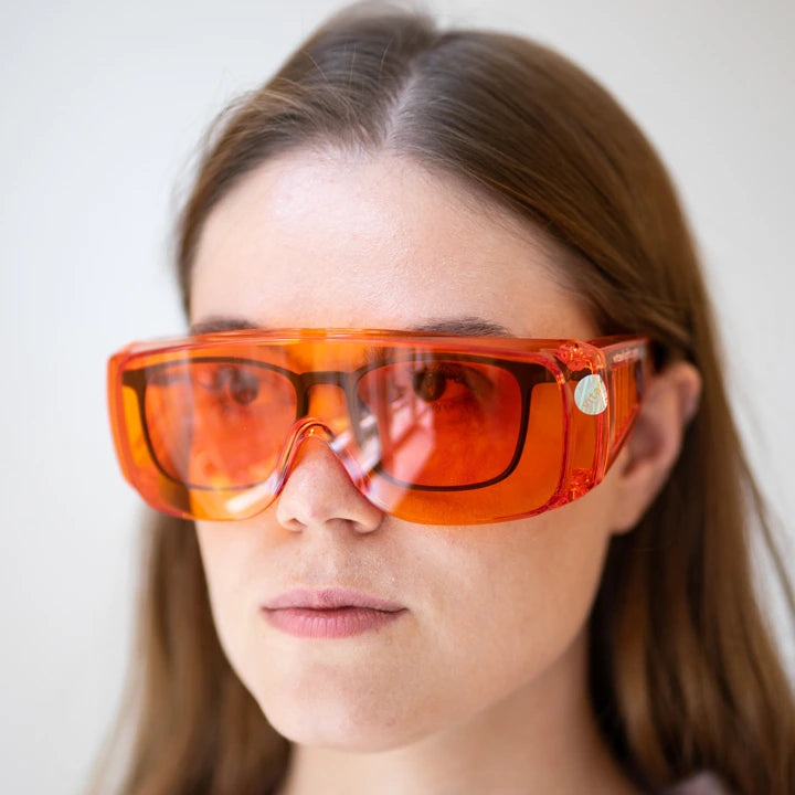 Schützen Sie Ihren Schlaf mit unseren roten Brillen, die störendes blaues und grünes Licht zu 100 % blockieren. Tragen Sie sie nachts, um Ihren natürlichen Schlafrhythmus aufrechtzuerhalten. Sie sind der perfekte Begleiter, um die Auswirkungen von künstlichem Licht zu vermeiden, das Ihre innere Uhr durcheinanderbringen kann. Ideal für abendliche Bildschirmzeiten, zum Entspannen zu Hause oder jederzeit, wenn Sie sich unter Innenbeleuchtung aufhalten.